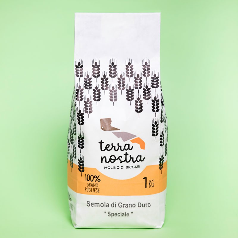 La semola speciale è caratterizzata da un colore particolarmente giallo ed una granulometria grossolana. Essa rappresenta l’eccellenza della nostra terra per la produzione di pasta secca e fresca.